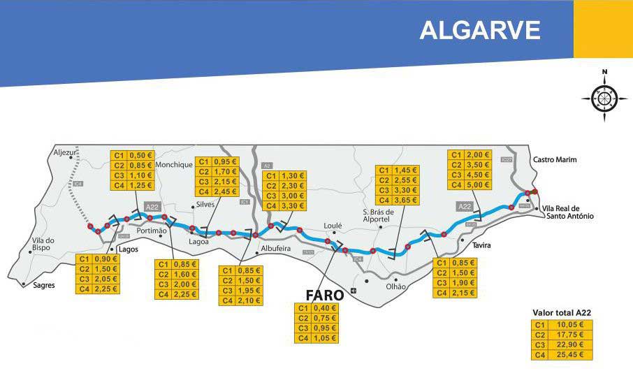 Hier die Karte der Estradas Portugal für die A 22 - die Via do Infante D. Henrique an der Algarve: